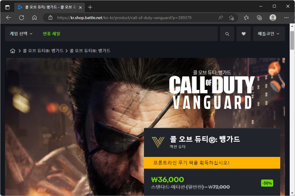 5. 콜 오브 듀티®: 뱅가드 : 36,000원