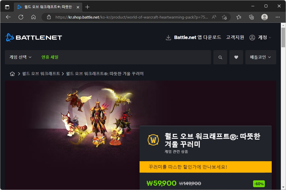 9. 월드 오브 워크래프트®: 따뜻한 겨울 꾸러미 : 59.900원