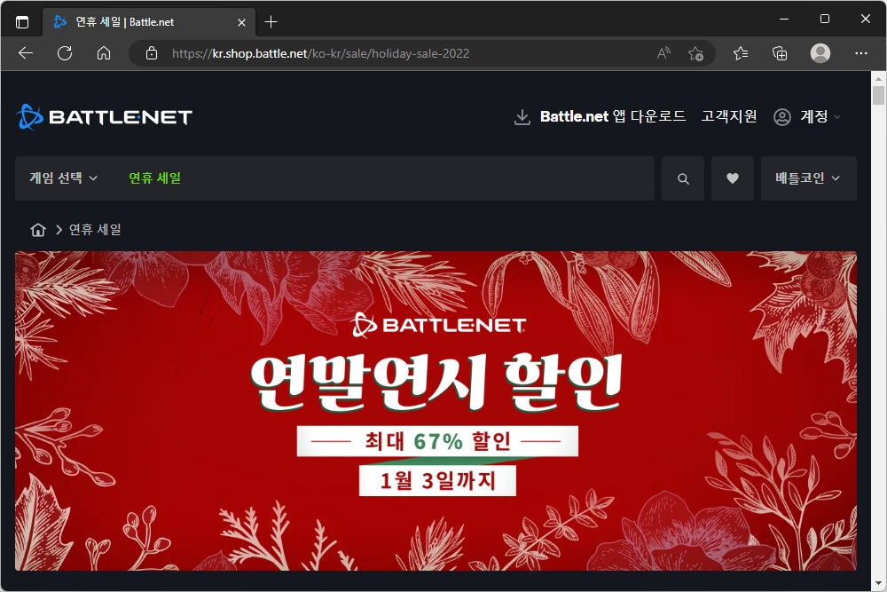 블리자드 배틀넷 연말연실 할인은 2023년 1월 3일까지 진행될 예정이고 할인 폭의 경우에는 최대 67%입니다. 그런데 늘 그렇듯이 인기 있는 게임들의 할인 폭은 그렇게 큰 편은 아닙니다.