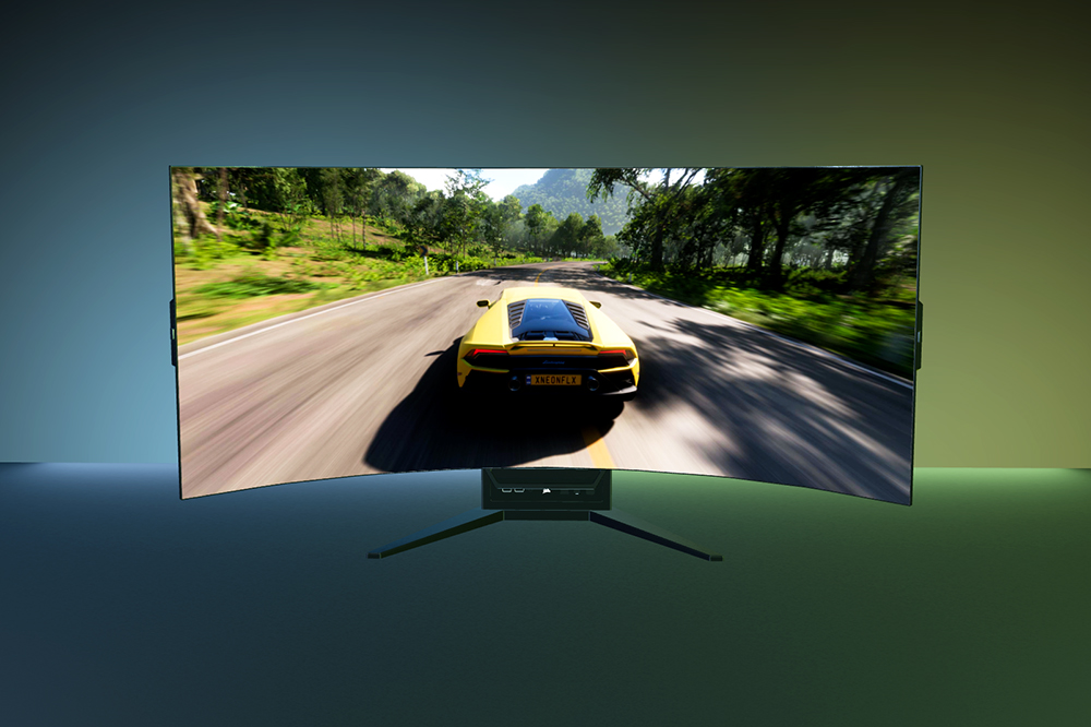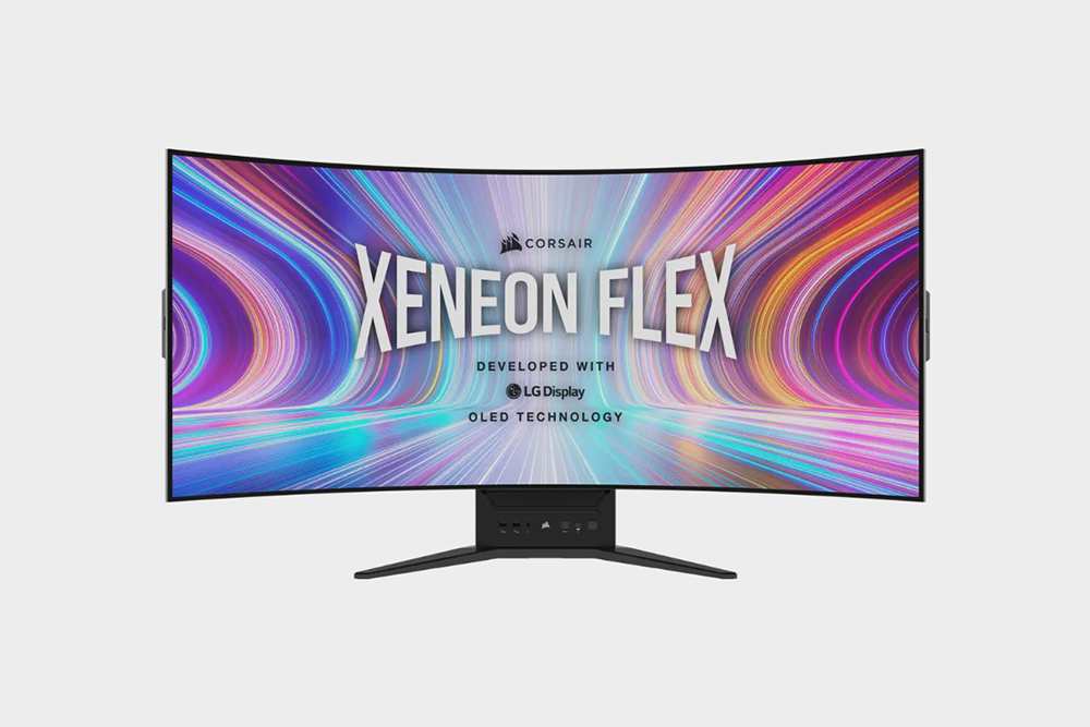 커세어 45WQHD240 OLED 모니터를 실제로 벤딩을 하면 위와 같은 모습인데요. 몰입감을 높일 수 있다는 장점은 있지만 설치 공간은 상당히 넓게 차지할 것으로 에상됩니다.