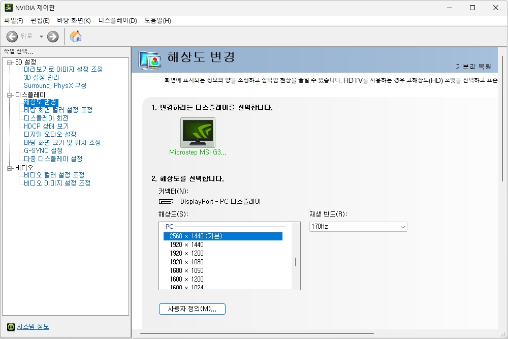 MSI G322CQP 게이밍 모니터에는 170Hz 주사율과 1ms MPRT 응답 속도를 제공하는 32인치 WQHD(2560 x 1440) 해상도의 VA 패널이 탑재되어서 화면 전환이 빠른 게임들도 부드럽게 플레이할 수 있습니다. 참고로 DP 오버클럭킹을 활성화해야지만 170Hz 주사율이 활성화되고 옵션을 끄면 165Hz로 설정됩니다.