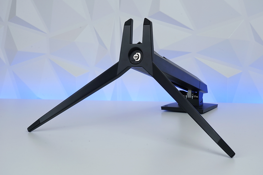 MSI G322CQP 게이밍 모니터의 스탠드는 세련된 스타일로 디자인되었고 중앙 부분이 바닥에 밀착된 것이 아니라 약간 띄워져 있다는 점이 특색있는 부분이라고 생각되었습니다.