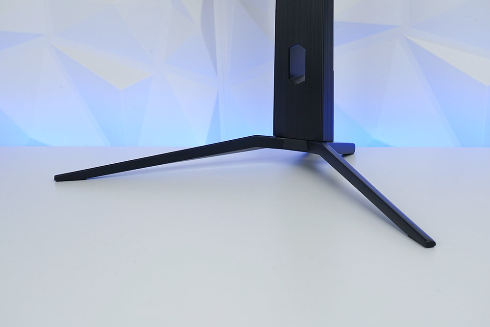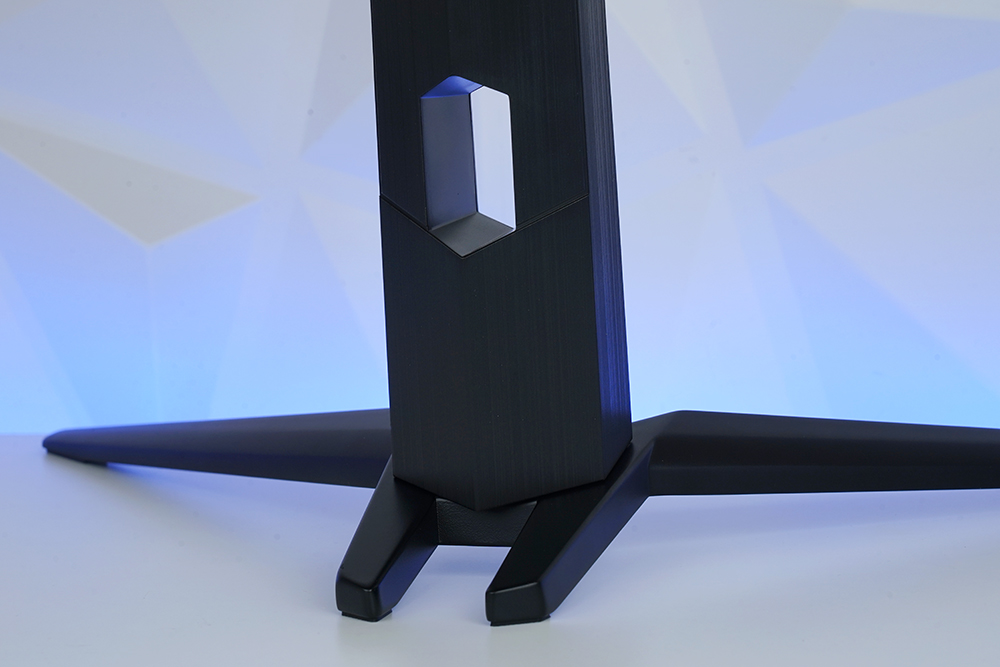 MSI G322CQP 게이밍 모니터의 스탠드에는 전원과 신호 케이블을 정리할 수 있는 홈이 준비되어 있습니다. 그래서 책상 위를 조금 더 깔끔하게 정리할 수 있습니다.