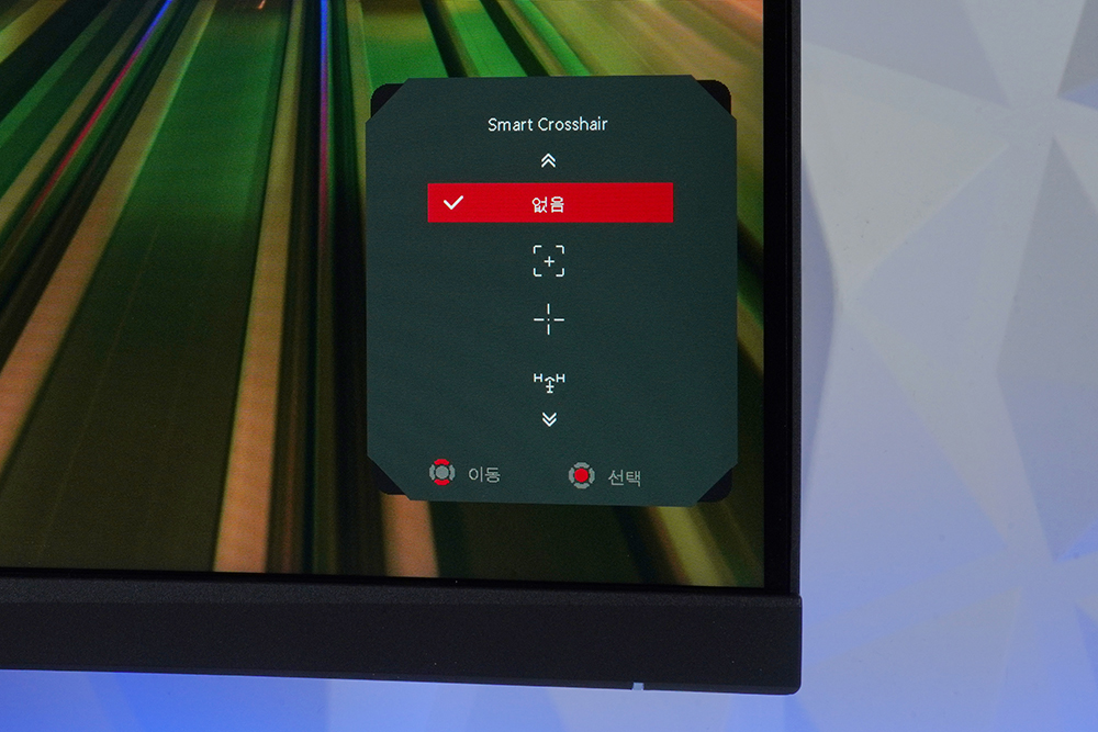 그리고 Smart Crosshair(조준선) 기능을 사용하면 화면의 중앙에 고정된 조준선이 표시됩니다. 특히 다양한 형태를 제공하고 색상도 변경할 수 있어서 은근히 활용도가 높은 편입니다.