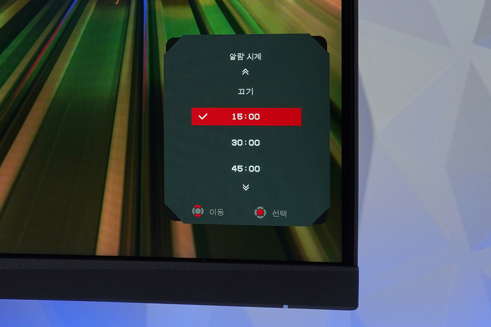 알람 시계(게임 타이머) 기능을 이용하면 화면에 15/30/45/60분 단위로 타이머 기능을 실행시킬 수 있습니다. 자신의 플레이하는 게임의 종류에 따라서 활용해주는 것이 좋을 것 같습니다.