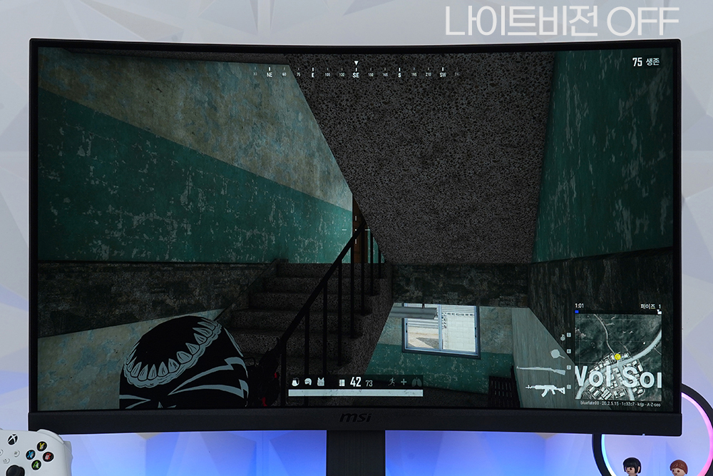 우선 나이트 비전 기능을 이용해서 게임 화면의 암부의 밝기를 조절해서 상대를 조금 더 빠르게 찾아낼 수 있도록 도와주는 역할을 합니다. 배틀그라운드와 같은 FPS 게임을 플레이할 때 활용하면 좋을 것 같습니다.