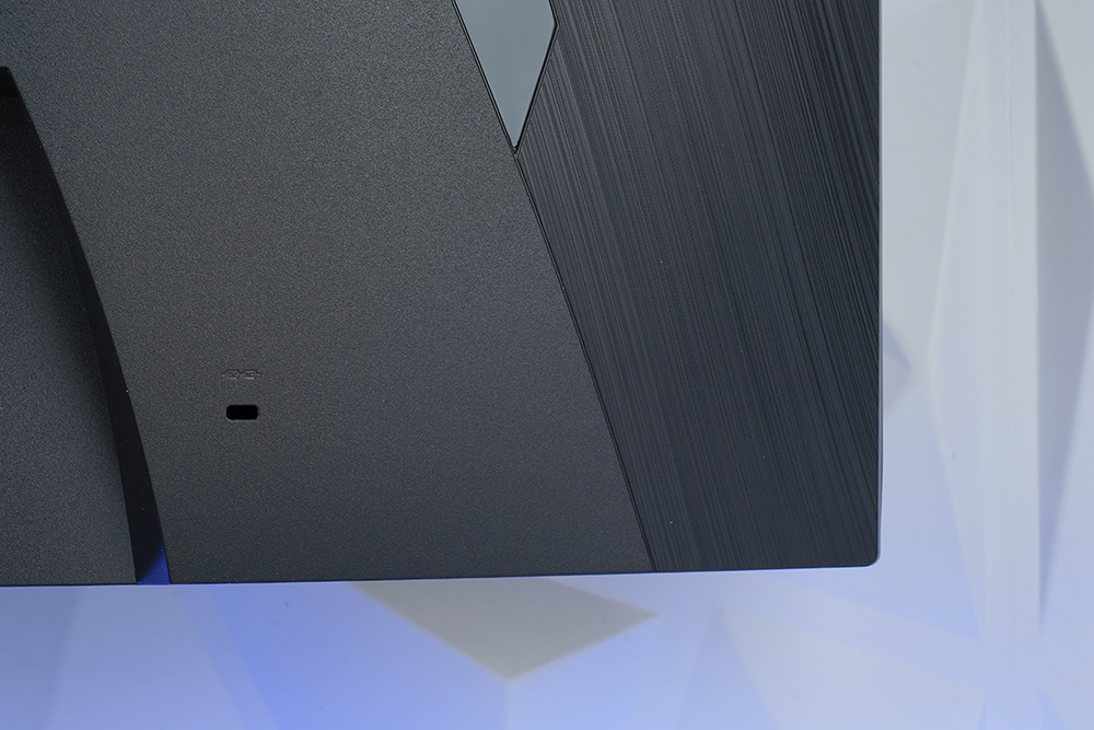 MSI G322CQP 게이밍 모니터의 뒷면에는 도난 방지용 켄싱턴 락 홈이 준비되어 있습니다. 개방된 공간에 모니터를 설치하려는 분들에게 필수적인 옵션이라고 할 수 있습니다.