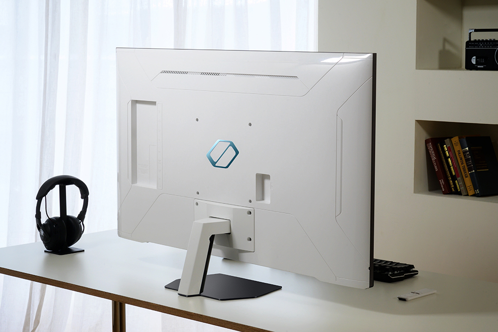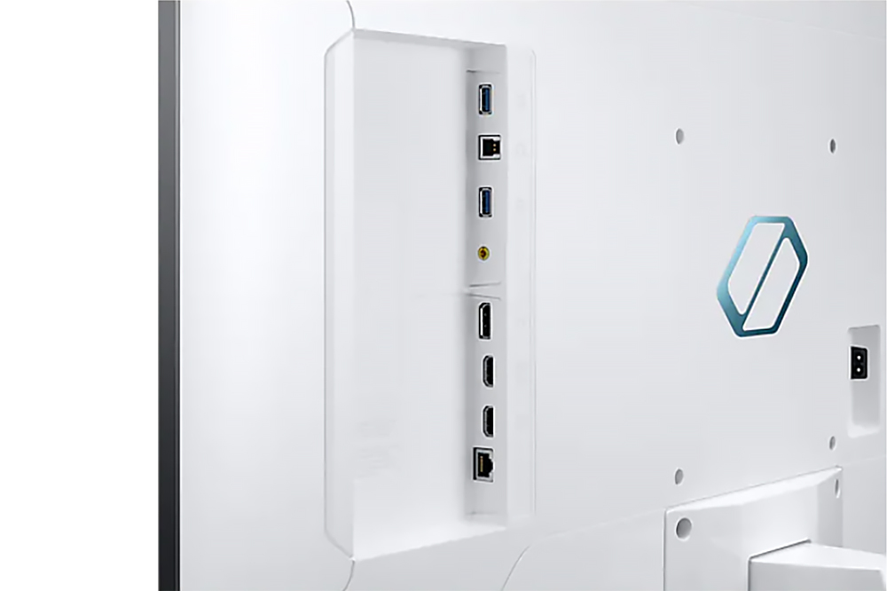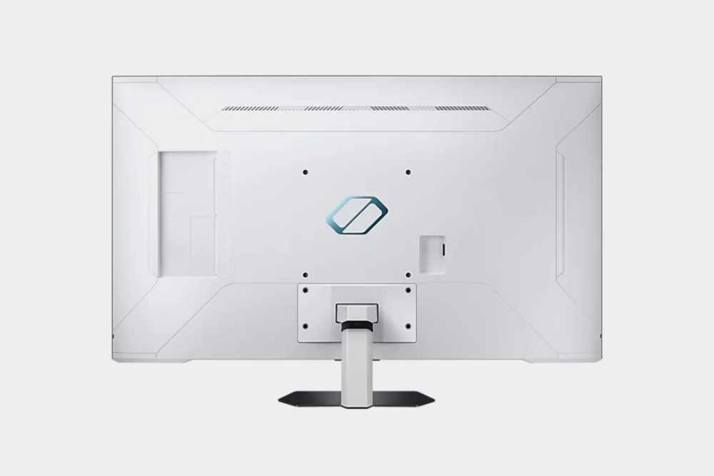 삼성 오디세이 네오 G7(G70NC) 게임용 모니터의 뒷면을 살펴보면 일반적인 게이밍 모니터와는 다르게 화이트 컬러로 제작된 것을 확인할 수 있습니다. 그리고 베사 규격을 지원해서 모니터 암에 장착해서 사용할 수도 있습니다.