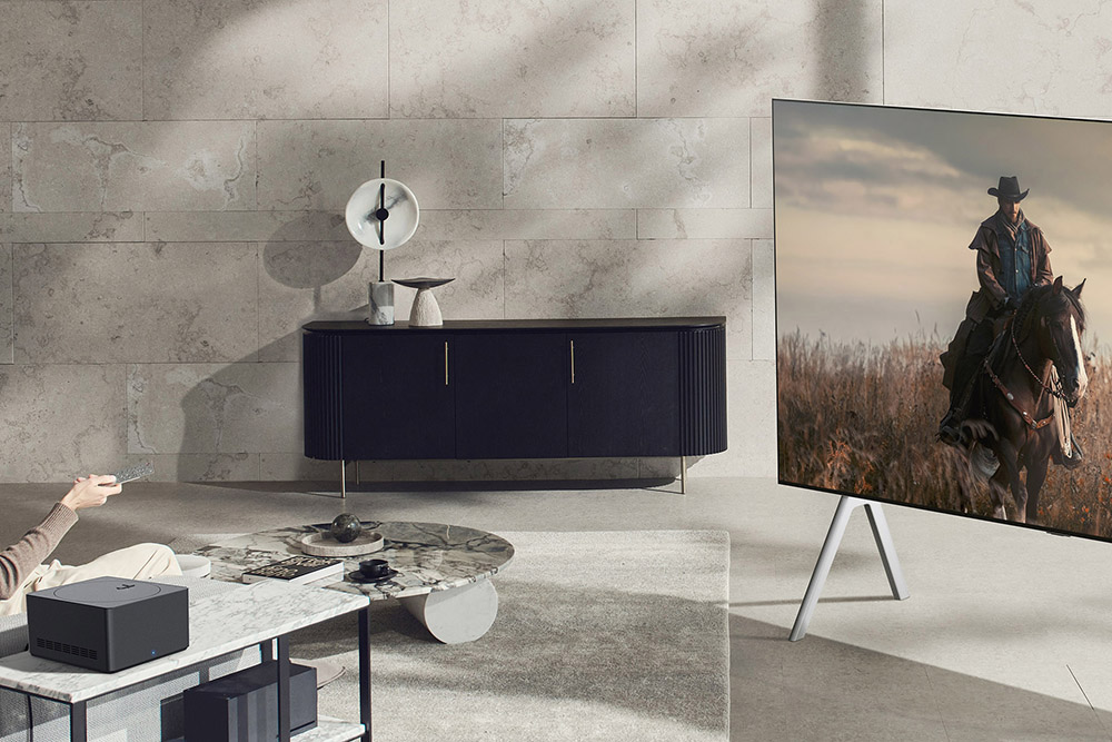 LG 시그니처 올레드 M의 핵심은 제로 커넥트 박스(Zero Connect Box)라고 할 수 있습니다. HDMI 2.1과 USB, RF, LAN 포트, 블루투스와 같은 기능을 지원해서 셋톱박스나 콘솔 게임기 그리고 사운드바 등 다양한 제품을 연결할 수 있는 AV 전송 박스라고 합니다. 그리고 LG전자의 독자 기술로 완성된 무선 AV 전송 솔루션은 와이파이6(Wi-Fi6E) 대비 최대 3배 빠른 속도로 데이터를 전송할 수 있고 돌비비전(Dolby Vision)과 음향기술 돌비애트모스(Dolby Atmos)를 모두 지원한다고 합니다.
