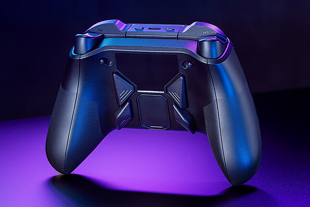 에이수스 ROG Raikiri Pro 컨트롤러의 뒷면을 살펴보면 프로그램 가능한 4개의 버튼이 배치되어 있어서 편리하게 활용할 수 있고 트리거 버튼은 잠금 모드를 이용해서 전체와 짧게 활용할 수 있습니다.