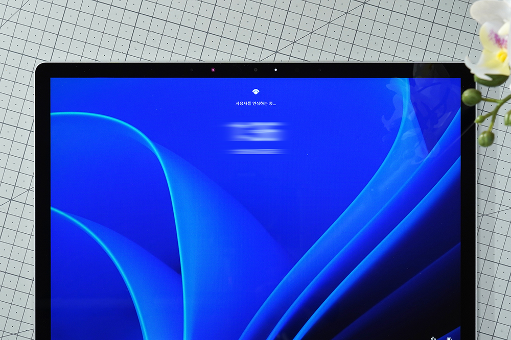 화면의 위쪽에는 윈도우 헬로(Windows Hello) 얼굴인식 카메라가 탑재되었습니다. 그리고 얼굴인식을 통해서 간단하게 잠금을 해제할 수 있습니다. 상당히 편리한 기능 중의 하나입니다.