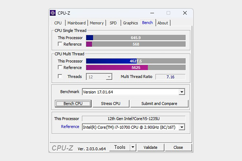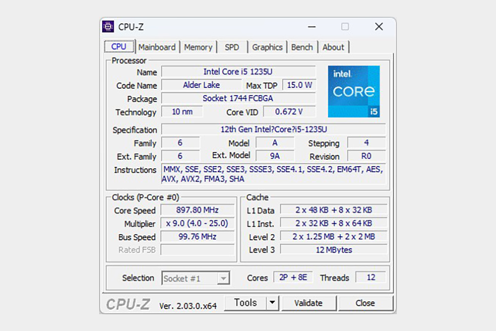 12세대 인텔® 코어™ i5-1235U의 성능을 살펴보면 2개의 고성능 P코어와 8개의 고효율 E코어로 구성되어 있고 20스레드를 지원해서 효율적으로 멀티태스킹 작업을 처리할 수 있습니다.