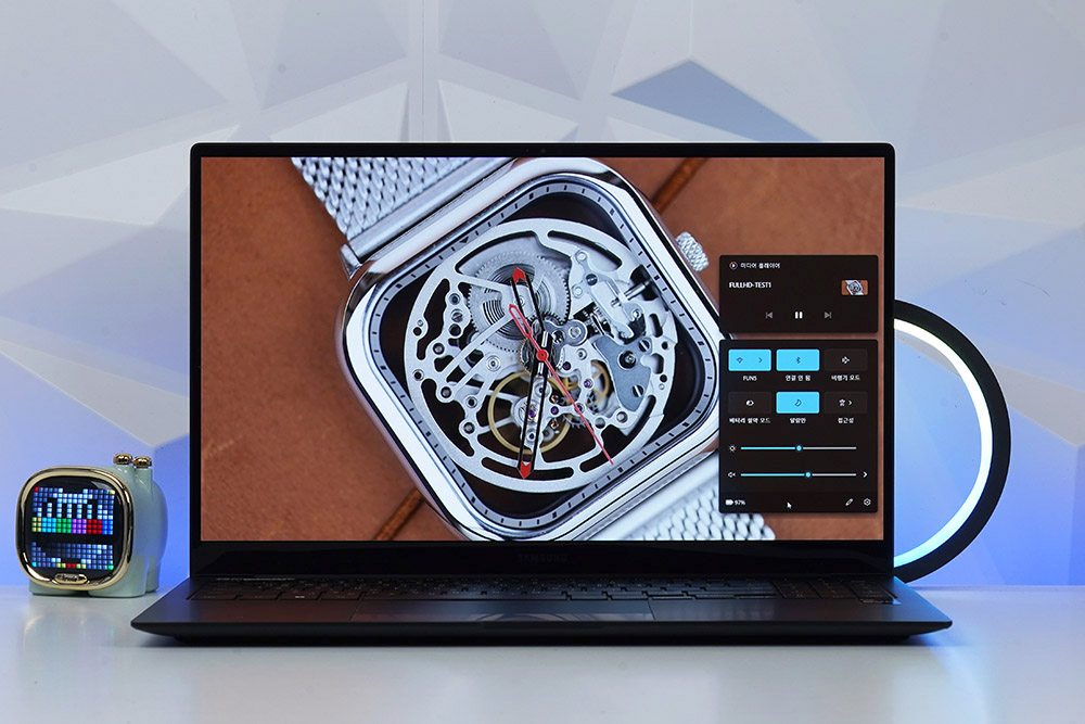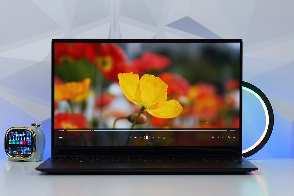 삼성전자 갤럭시북2 프로에는 15.6인치 AMOLED 디스플레이가 탑재되었습니다. 특히 컬러 볼륨 120%의 생생한 색감에 깊은 명암비 그리고 빠른 응답 속도까지 제공하기 때문에 동영상 감상용으로 사용하기에 적합합니다.