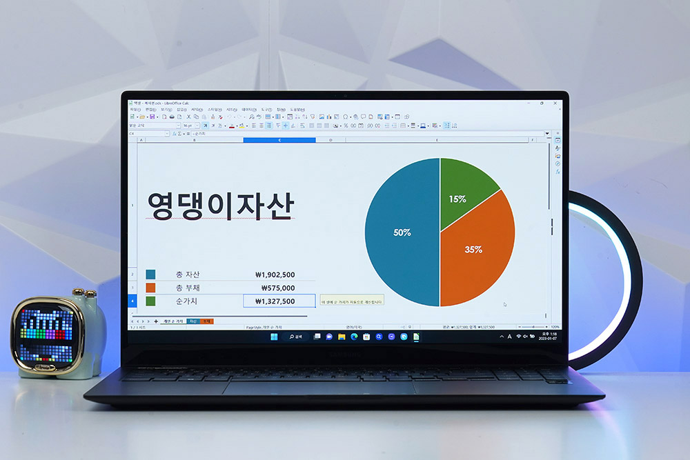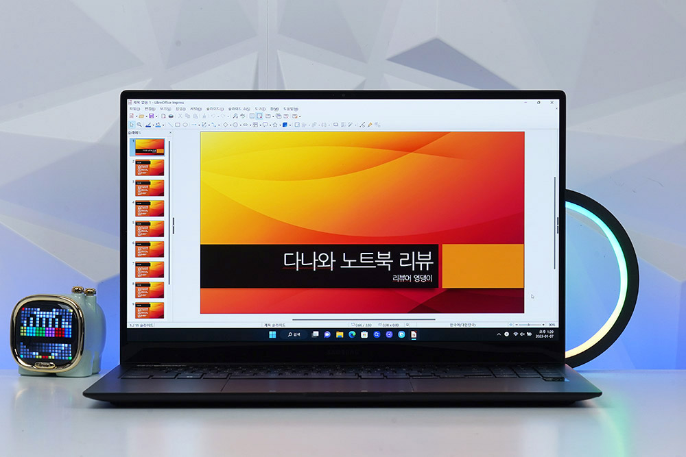 그리고 삼성전자 갤럭시북2 프로에 탑재된 프로 키보드에는 숫자키와 백라이트가 탑재되어서 있어서 어두운 환경에서도 각종 문서 작업을 할 수 있고 내장된 HDMI 단자에 프로젝터를 연결해서 프레젠테이션을 진행할 수도 있습니다.
