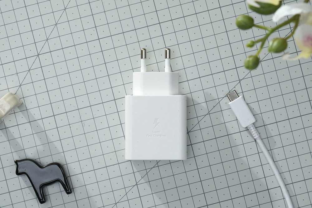 삼성전자 갤럭시북2 프로의 구성품을 살펴보면 65W 출력을 지원하는 화이트 컬러의 USB Type-C 어댑터가 포함되어 있고 역시 같은 색상의 USB C to C 케이블도 제공됩니다.
