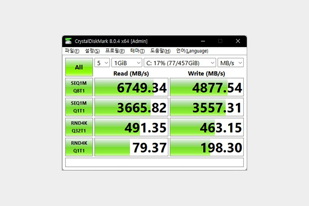 마지막으로 노트북의 전체적인 성능을 평가해주는 PCMARK10의 점수는 5526점으로 측정되었습니다. 12세대 인텔® 코어™ i7 프로세서는 상당히 뛰어난 성능을 제공해준다고 판단되었습니다.