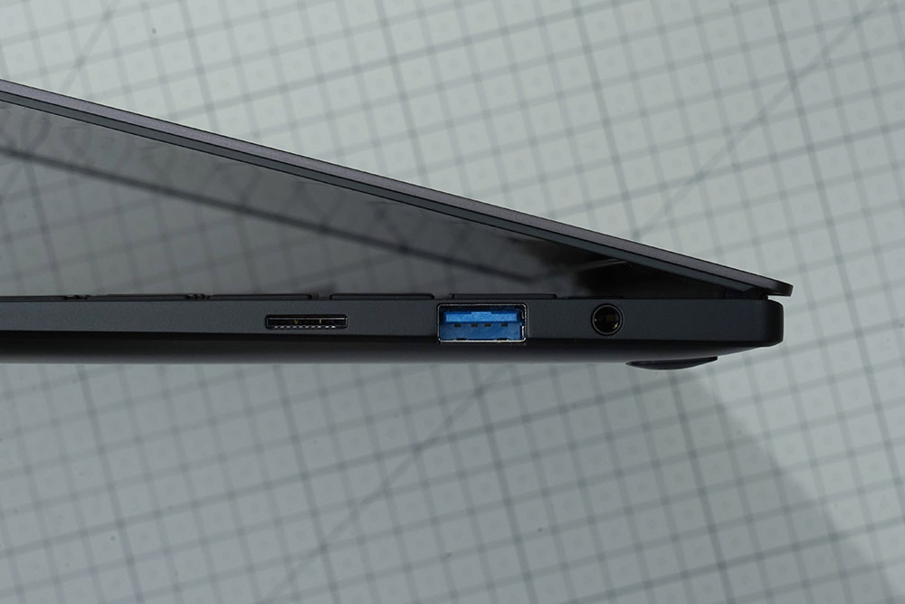 반대쪽 옆면에는 마이크로SD 카드 리더기와 USB 3.2 그리고 헤드폰 출력/마이크 입력 콤보 단자가 배치되어 있습니다. 전체적인 확장성은 준수한 수준이라고 판단되었습니다.