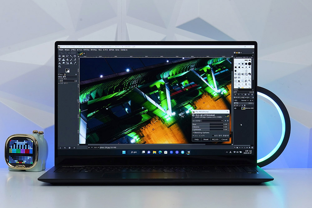삼성전자 갤럭시북2 프로에 탑재된 12세대 인텔® 코어™ i7 프로세서는 사진이나 간단한 동영상을 편집하는데 크게 불편하지 않을 성능을 제공합니다. 참고로 마이크로SD 카드 리더기를 탑재했다는 점도 크리에이터들에게 유용한 부분입니다.