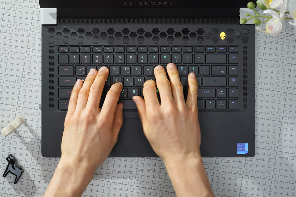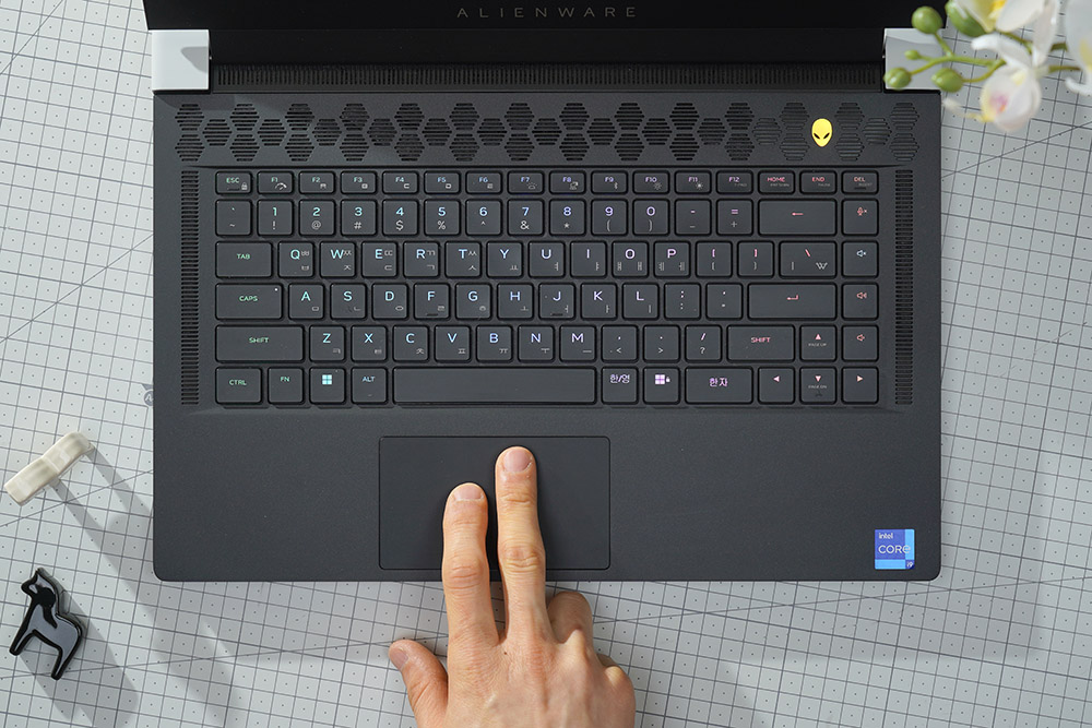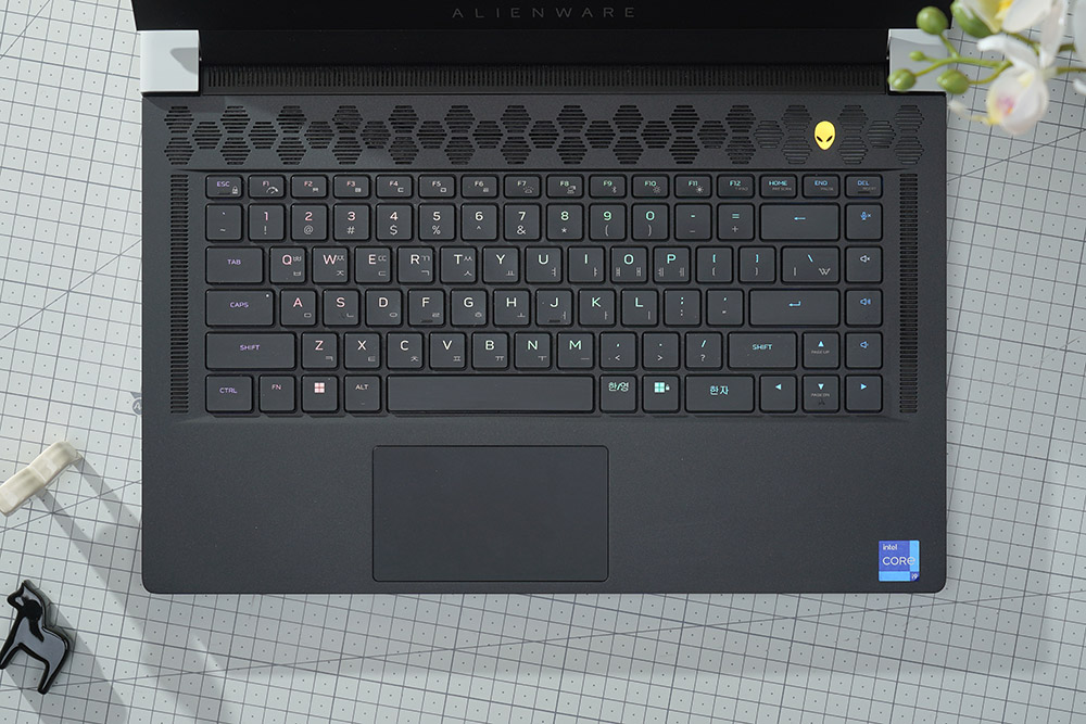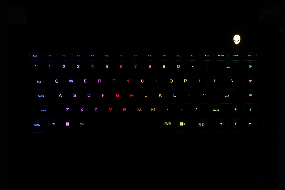 델 에일리언웨어 X15 R2 WP09KR에는 Per-Key RGB LED AlienFX Alienware X 키보드가 탑재되었습니다. 특히 선명한 RGB 조명과 맨 오른쪽에 미디어 키를 별도로 탑재했다는 점이 차별화된 특징이라고 판단되었습니다.
