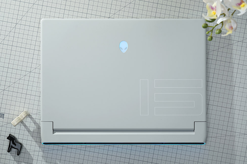 델 에일리언웨어 X15 R2 WP09KR의 색상은 깔끔한 루나 라이트(Lunar Light)로 제작되었고 고내구성 클리어코트가 적용되었습니다. 그리고 로고 부분에 AlienFX RGB LED 조명이 탑재되어 있다는 점이 특색 있는 부분입니다.