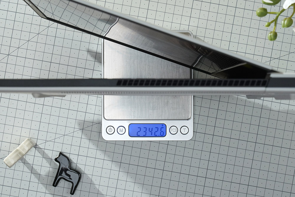 델 에일리언웨어 X15 R2 WP09KR의 두께는 가장 두꺼운 부분이 16.75mm(얇은 부분은 12.5mm)로 고성능 게이밍 노트북 중에서는 슬림한 편이라고 할 수 있습니다. 그리고 무게는 2.34kg으로 측정되었습니다. 휴대하는데 크게 부담되는 편은 아니라고 생각되었습니다.