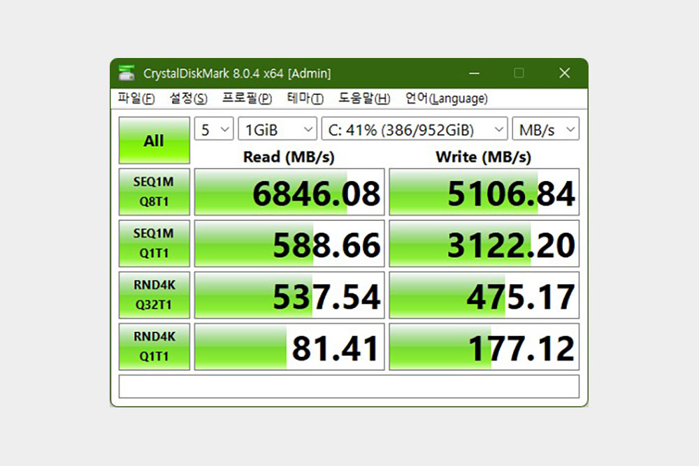 그리고 델 에일리언웨어 X15 R2 WP09KR에는 1TB 용량의 NVMe SSD가 탑재되었고 4세대 PCI Express 4.0을 지원해서 속도가 상당히 빠른 편이라는 것을 확인할 수 있습니다.