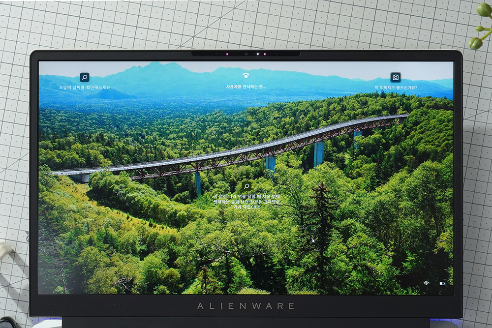디스플레이의 위쪽에는 Windows Hello(윈도우 헬로우)를 지원하는 IR 카메라가 탑재되었습니다. 그래서 얼굴 인식을 통해서 간단하게 잠금을 해제할 수 있습니다. 편리하고 안전한 기능이라고 할 수 있습니다.