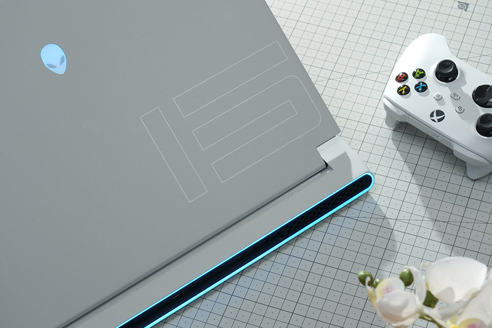 델 에일리언웨어 X15 R2 WP09KR의 색상은 깔끔한 루나 라이트(Lunar Light)로 제작되었고 고내구성 클리어코트가 적용되었습니다. 그리고 로고 부분에 AlienFX RGB LED 조명이 탑재되어 있다는 점이 특색 있는 부분입니다.