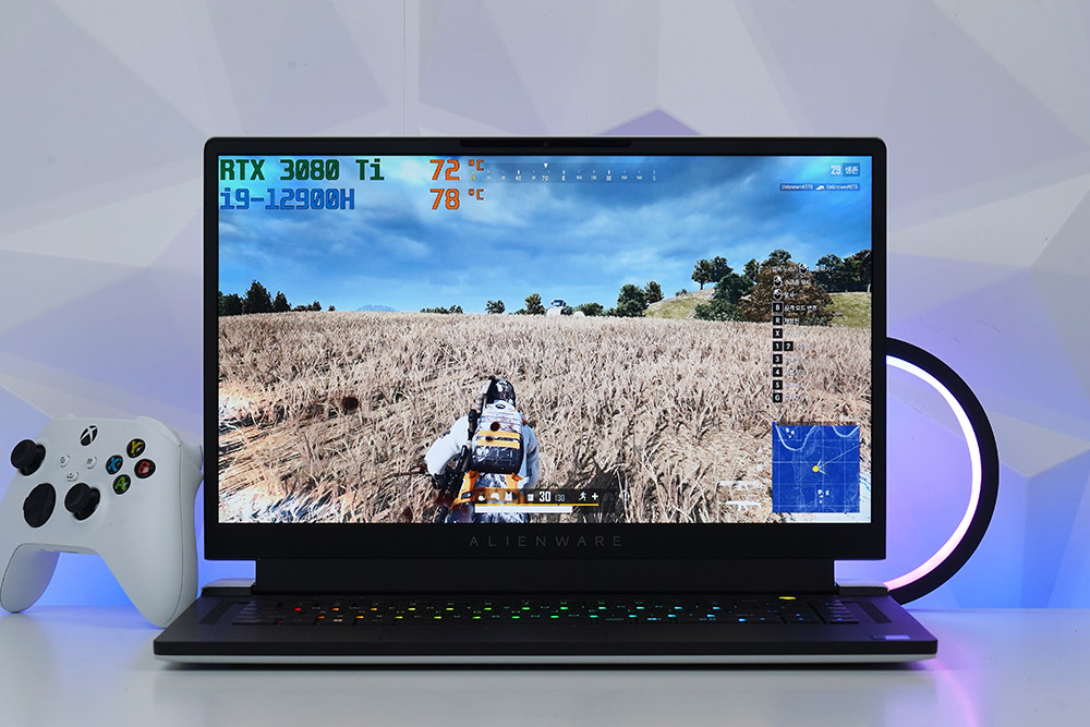 실제로 위와 같은 설정의 배틀그라운드를 플레이할 때 온도를 확인해 보면 CPU는 70도 초반 GPU는 70도 후반을 유지했습니다. 참고로 노트북 온도는 주변 환경과 플레이하는 게임의 종류에 따라서 차이가 발생할 수 있습니다.