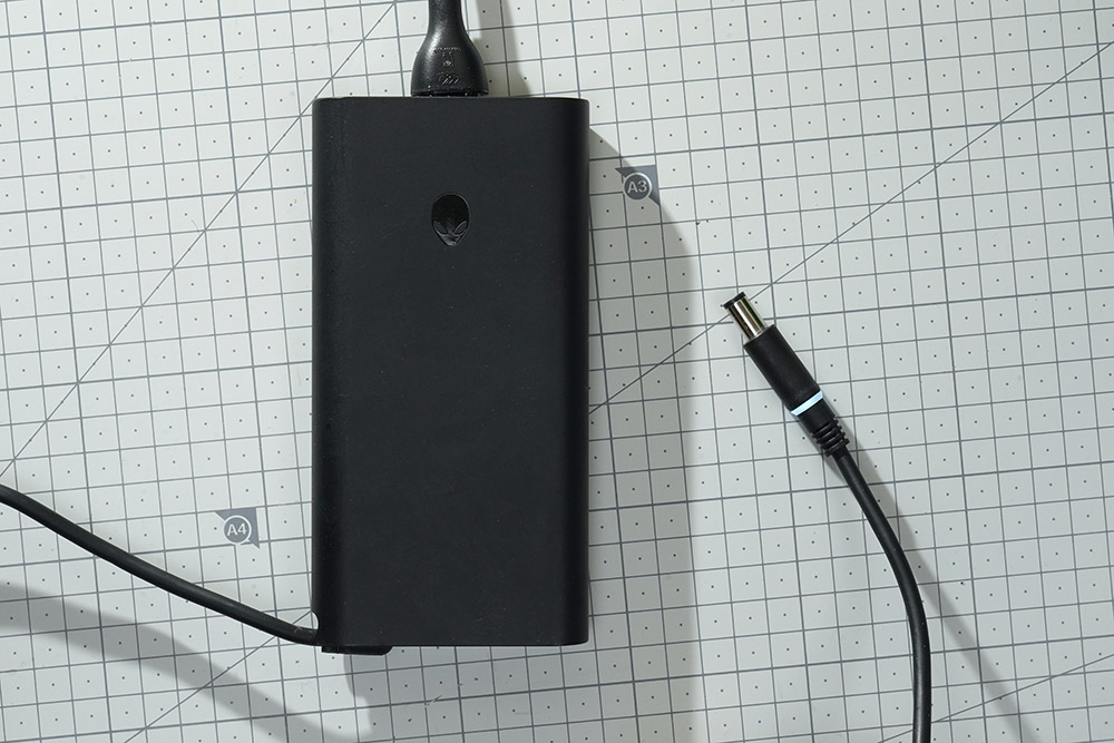 깔끔한 스타일의 어댑터는 프리볼트 입력을 지원해서 커넥터만 맞으면 해외에서도 사용할 수 있고 출력은 19.5V, 12.31A 약 240W입니다. 그리고 커넥터 부분에 LED가 장착되어 있어서 전원의 연결 상태를 확인할 수 있습니다.