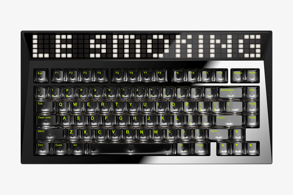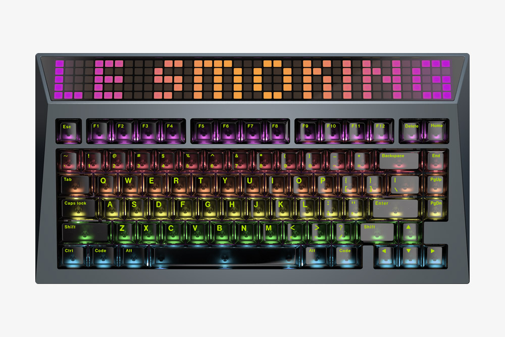 AngryMiao 사이버보드 R2 커스텀 키보드에는 200개의 픽셀(40 x 5 배열)로 구성된 RGB 컬러 LED 매트릭스 패널이 적용되었습니다. 전용 프로그램을 통해서 자신의 취향에 따라서 컬러나 효과를 변경할 수 있습니다. 디자인적인 완성도를 높여주는 요소라고 할 수 있습니다.