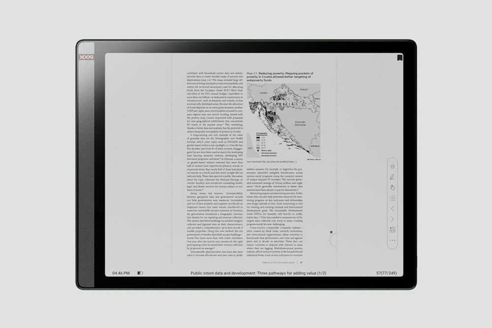Onyx BOOX Tab X는 4,096 레벨의 필압을 지원하는 스타일러스 펜(BOOX stylus touch)을 이용해서 정밀하게 필기를 할 수 있습니다. 해상도도 충분하여서 각종 PDF 문서를 읽어야 하는 대학생이나 대학원생들에게 적합한 제품이라고 할 수 있습니다.