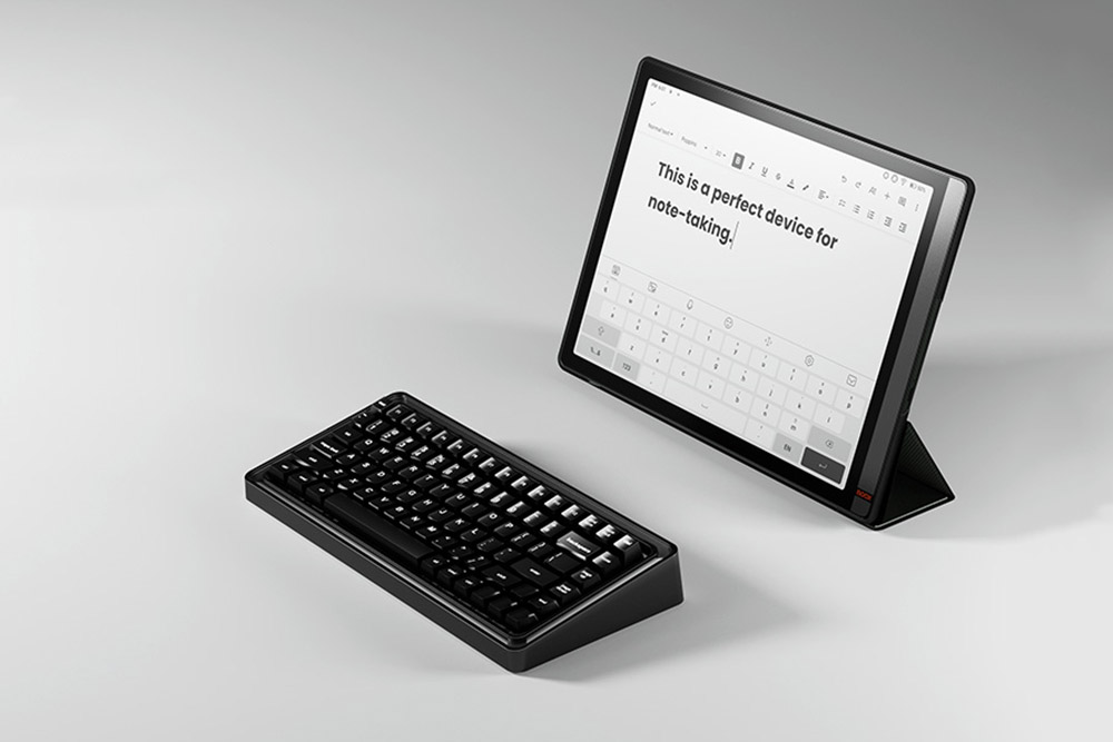 Onyx BOOX Tab X에는 2.4GHz와 5GHz 주파수 대역을 지원하는 와이파이가 탑재되었고 블루투스 5.0도 지원합니다. 그래서 블루투스 키보드를 연결해서 타이핑을 할 수 있습니다.