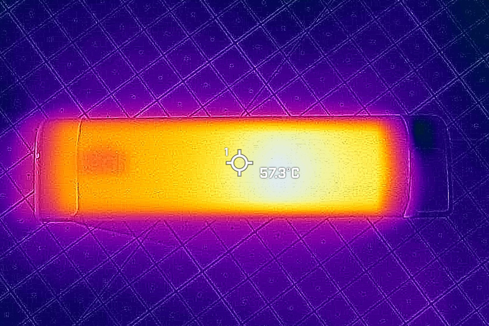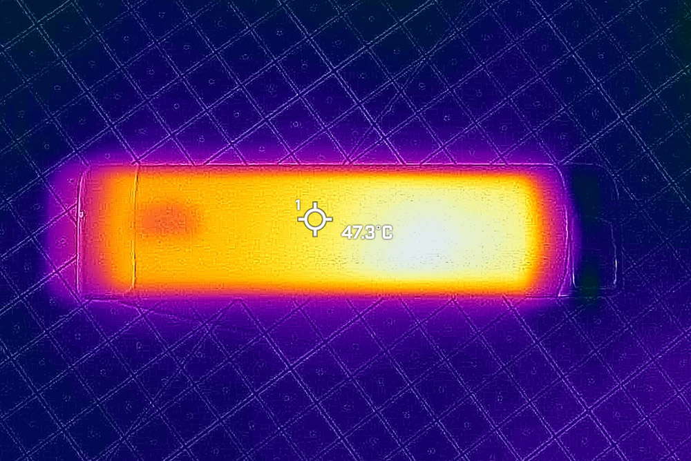 알로코리아 WM500T 휴대용 손난로 보조배터리의 실제 온도를 확인해 보면 1단계에서는 약 47.3도, 2단계에서는 약 54도 그리고 3단계에서는 약 57.3도가 측정되었습니다.