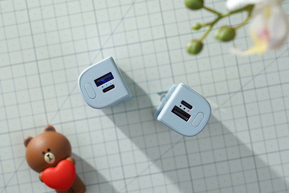 옆쪽을 살펴보면 전원 버튼과 USB 타입C 입력포트 그리고 USB 타입A 출력 포트와 LED 램프가 배치되어 있습니다. 참고로 3개의 LED를 통해서 현재 배터리 상태와 3단계의 온도 상태를 확인할 수 있습니다.