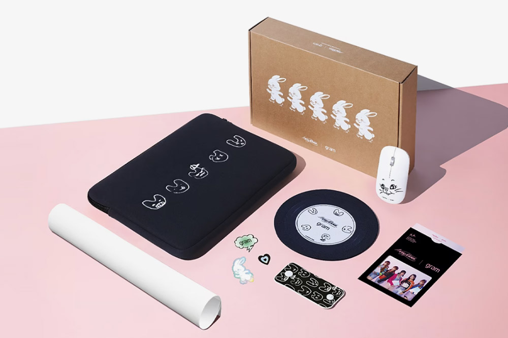 LG 그램 스타일 뉴진스 리미티드 에디션의 구성품을 살펴보면 노트북 파우치와 케이블 스트랩 그리고 마우스 패드&마우스, 스티커, 뉴진스 DIY 편지지 및 포스터로 구성되어 있습니다. 전체적으로 아기자기한 느낌을 주는 편이어서 팬들에게 메리트가 있을 것으로 예상합니다.