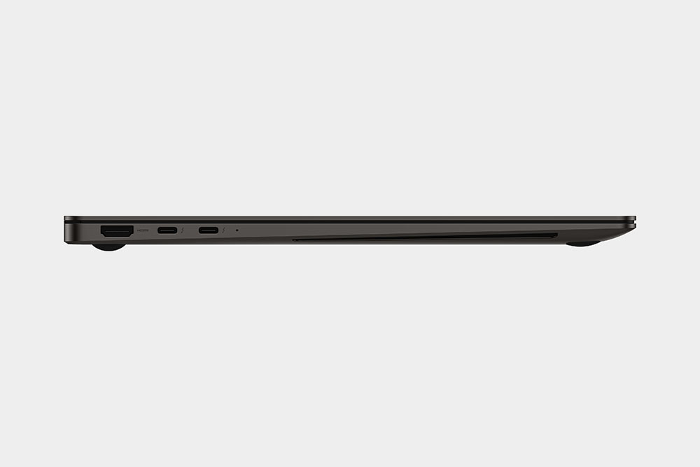갤럭시 북 3 프로 16인치 모델의 입출력 단자를 확인해 보면 왼쪽에는 HDMI 1.4와 2개의 썬더볼트4가 탑재되었고 반대쪽 옆면에는 마이크로SD 카드 슬럿과 USB 3.2 타입A 그리고 헤드폰/마이크 단자가 배치되어 있습니다. 연결성이 뛰어나다고는 할 수 없지만 기본은 갖췄다고 할 수 있습니다. 그렇지만 HDMI 2.1이 아니라는 점은 조금 아쉬운 부분입니다.
