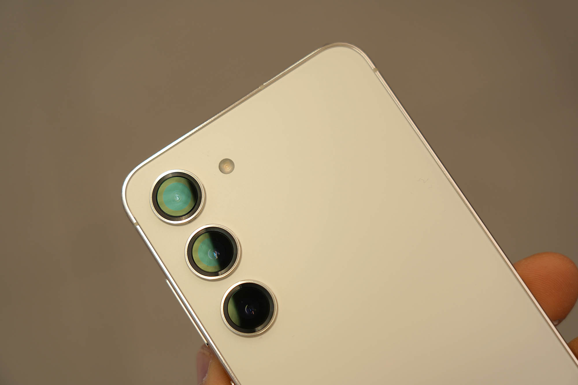 갤럭시 S23에는 후면 트리플 카메라가 탑재되었습니다. 5천만 듀얼픽셀 광각(F1.8/OIS)와 1,200만 초광각(F2.2) 그리고 1천만 망원(3배줌/F2.4/OIS)으로 구성되어 있습니다. 참고로 컨투어컷 카메라 하우징은 없어졌고 물방울 형태로 변경되었습니다.