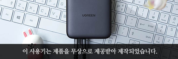 유그린(UGREEN) 65W GaN 충전기의 장단점은 분명합니다. 우선 크기가 콤팩트한 편이어서 휴대성이 우수하고 충전 성능도 우수하다고 생각되었습니다. 그렇지만 직구를 통해서 구매해야 하는 제품의 특성상 별도의 돼지코 어댑터가 필요하거나 아니면 8자 전원 코드를 추가로 구매해야 한다는 점은 단점이라고 판단되었습니다. 그래서 저는 다양한 디바이스를 동시에 충전할 수 있는 휴대성 좋은 충전기를 찾는 분들에게 유그린(UGREEN)의 제품을 추천합니다.