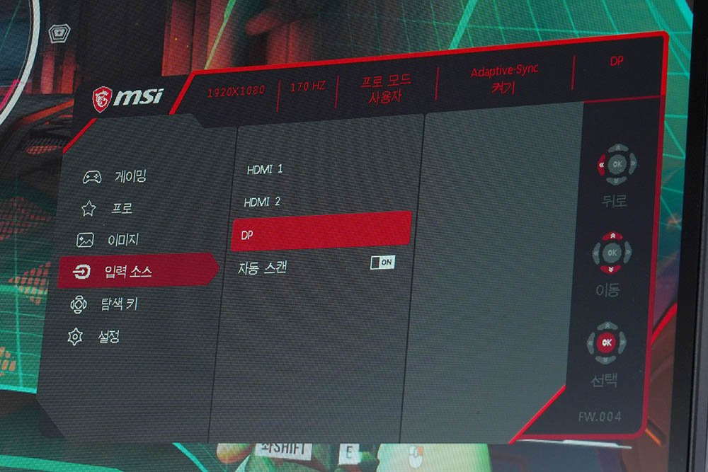 입력 소스에서는 HDMI1, HDMI2, DP 중에서 선택할 수 있고 자동 스캔 기능도 지원합니다. 참고로 MSI G27C5 E2 커브드 게이밍 모니터는 MSI 콘솔 모드를 지원해서 최신 플레이스테이션이나 엑스박스와 연결했을 때 120Hz 주사율을 지원합니다.