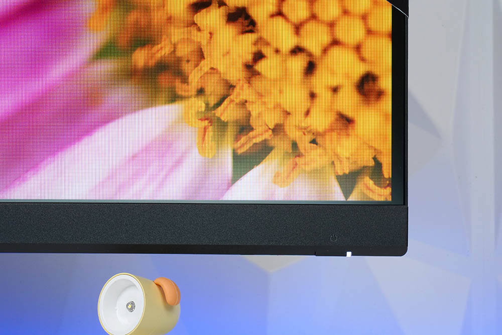 화면의 오른쪽 아래를 확인해 보면 전원 버튼과 함께 상태 표시 LED가 배치되어 있습니다. 참고로 OSD에서 전원 버튼의 역할을 끄기와 대기 중에서 선택할 수 있는 옵션이 준비되어 있습니다.