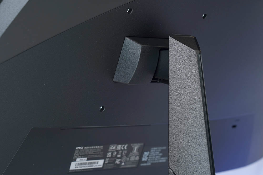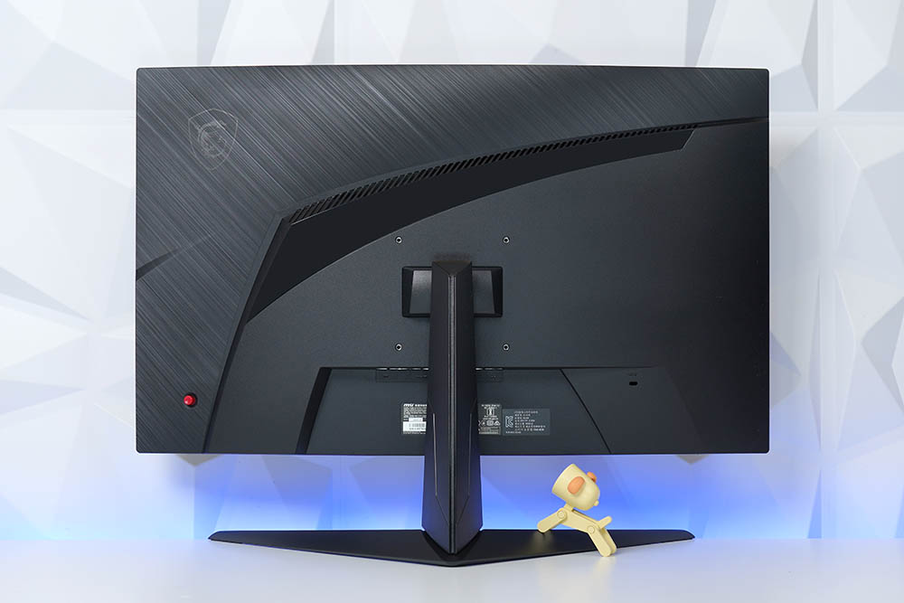 MSI G27C5 E2 커브드 게이밍 모니터의 뒷면도 상당히 세련된 스타일로 디자인된 것을 확인할 수 있습니다. 그래서 모니터를 벽에 밀착하지 않고 사용하는 게이머들에게 유용합니다.