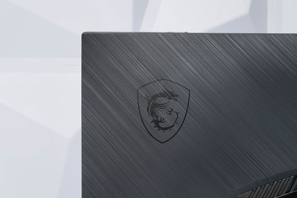 왼쪽 위를 살펴보면 사선으로 헤어라인 마감이 적용되었고 MSI 드래곤실드 로고가 배치된 것을 확인할 수 있습니다. 전체적으로 세련된 느낌이라는 인상을 받았습니다.