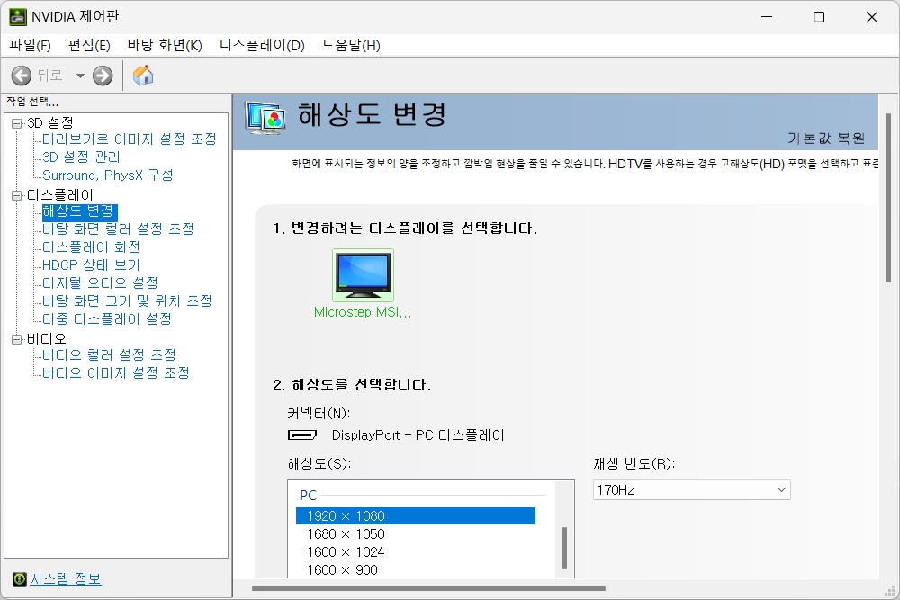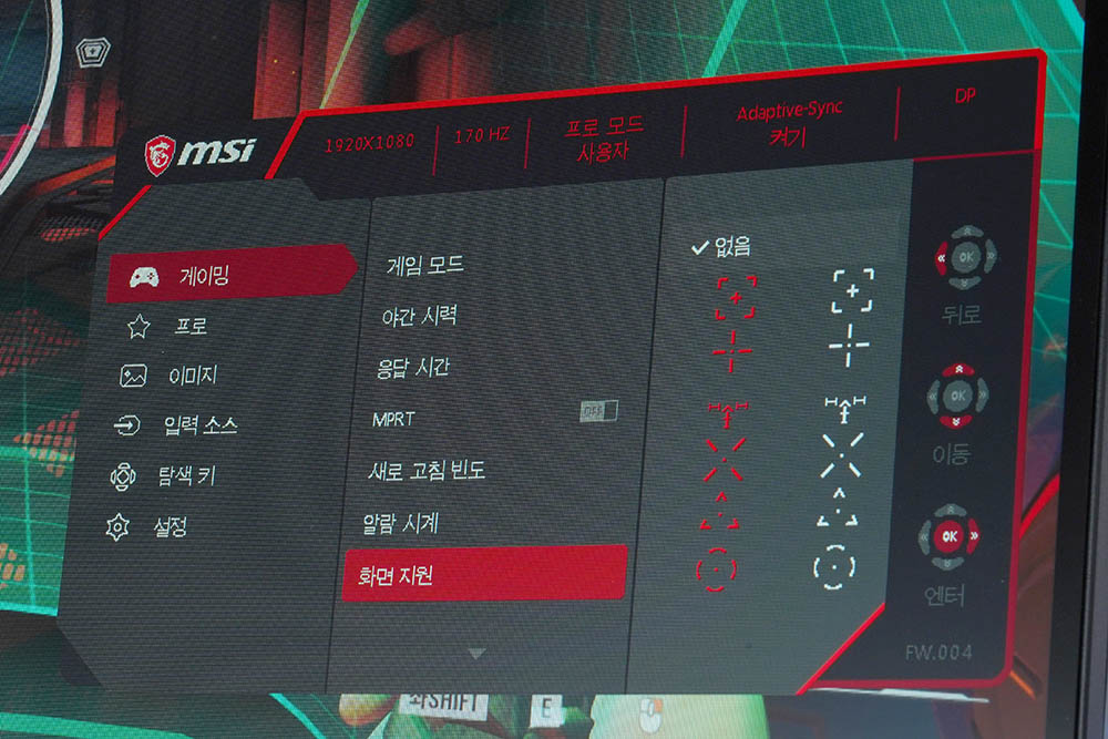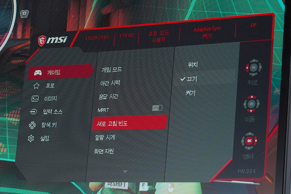 새로 고침 빈도를 켜면 화면에 실시간으로 변화하는 초당 프레임(FPS) 수치가 표시됩니다. 프레임의 변화에 민감한 게임을 플레이하는 분들에게 유용한 옵션이라고 판단되었습니다.