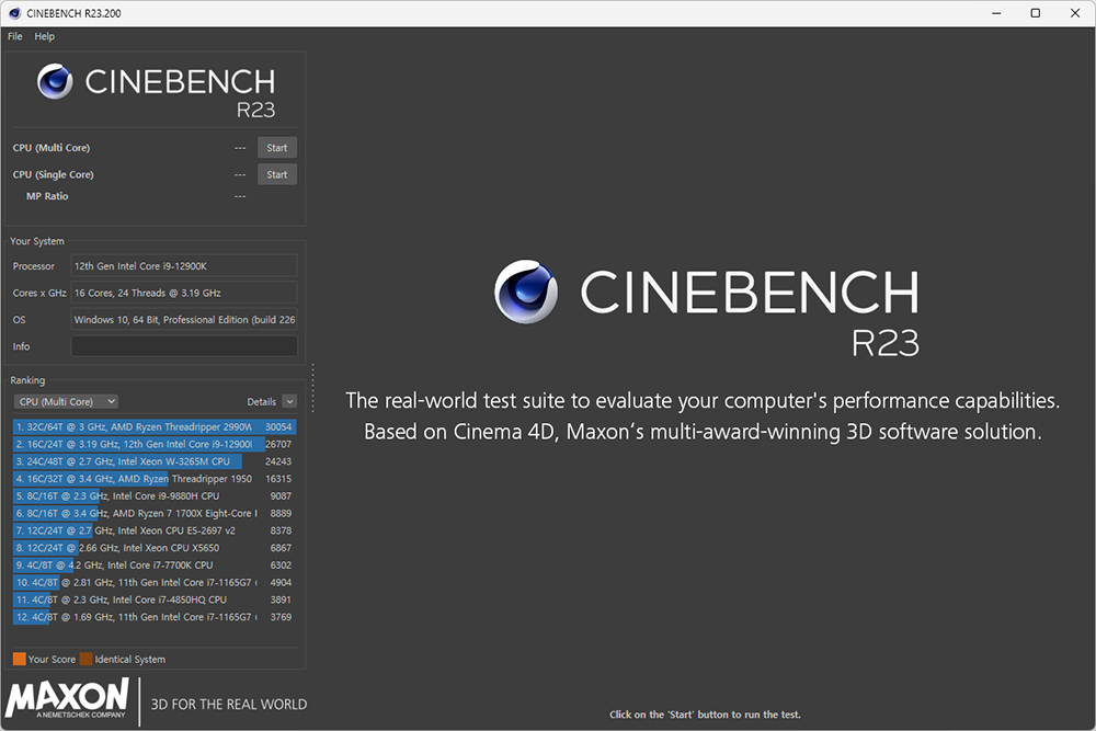 지금까지 씨네벤치 R23의 다운로드와 사용법을 자세하게 확인해 보았습니다. 다른 벤치마크 프로그램과는 다르게 전체적으로 단순한 느낌을 주는 편이고 결과 자체의 점수도 랭킹이 정확하게 표시되기 때문에 현재 성능 상태 자세하게 파악할 수 있습니다. 그리고 데스크톱 PC나 노트북 CPU의 성능을 평가하고 싶거나 오버클럭킹을 하려는 분들은 한 번 활용해 보시길 바랍니다.