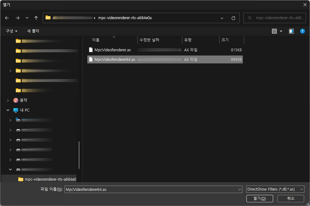다음에는 팟플레이어에 적용하는 방법입니다. 우선 아래의 링크에서 mpc-videorenderer-rtx-a684e0a.zip 라는 파일을 다운로드 받아야 합니다. 브라우저에 따라서 파일이 다운로드되지 않을 수 있으니 신중하게 선택하시길 바랍니다.