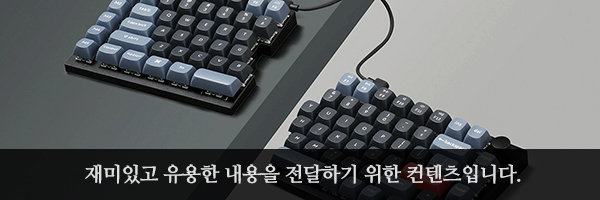 키크론 Q12 스플릿 기계식 키보드의 가장 큰 장점은 좌우가 분리되어 있다는 점입니다. 그래서 흡사 엘리스 배열의 키보드를 사용하는 것처럼 활용할 수 있습니다. 그렇지만 단점 역시도 존재하는데요. 가장 큰 문제는 B/ㅠ 키가 하나만 있다는 점입니다. 그래서 한국 사람들에게는 조금 불편할 수 있습니다.