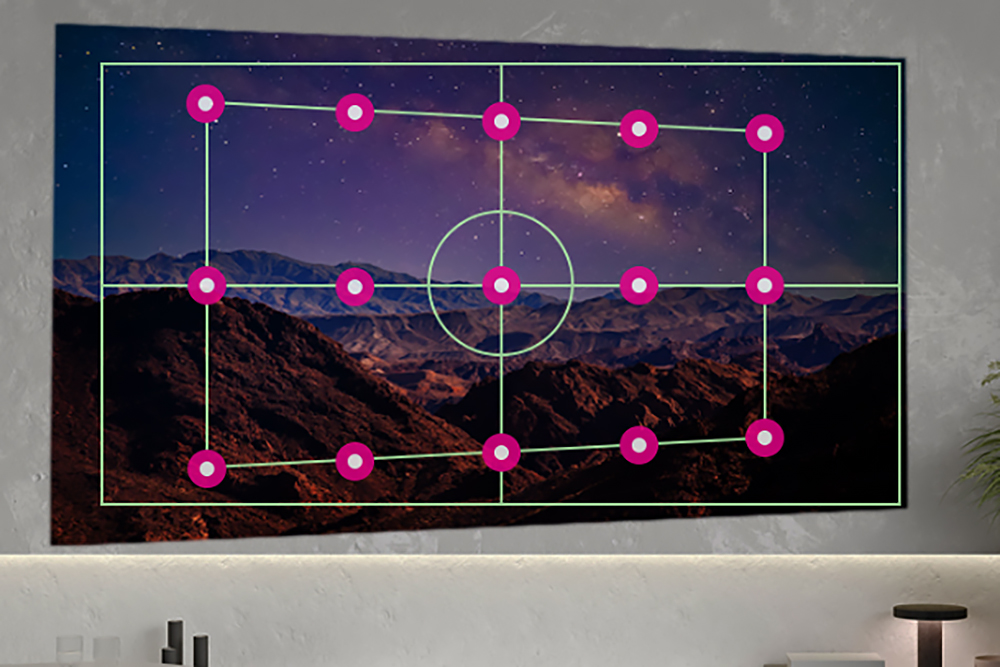 LG 시네빔 PU700R 4K 프로젝터의 특징을 살펴보면 90도 회전과 각도 조절이 가능한 관절을 가지고 있고 오토 포커스와 오토 키스톤 기능을 지원합니다. 그래서 스크린뿐만 벽이나 천장에 투사해서 사용할 수 있습니다. 참고로 내장된 카메라를 이용해서 4/9/15포인트 화면 조정 기능을 활용할 수 있다고 합니다.