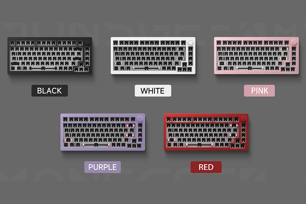 Akko MONSGEEK M1의 색상은 블랙과 화이트 그리고 핑크와 퍼플, 레드 실버 중에서 선택할 수 있습니다. 화이트는 스프레이로 마무리되었고 나머지는 아노다이징입니다. 참고로 현시점에 화이트 색상은 구매할 수 없습니다.