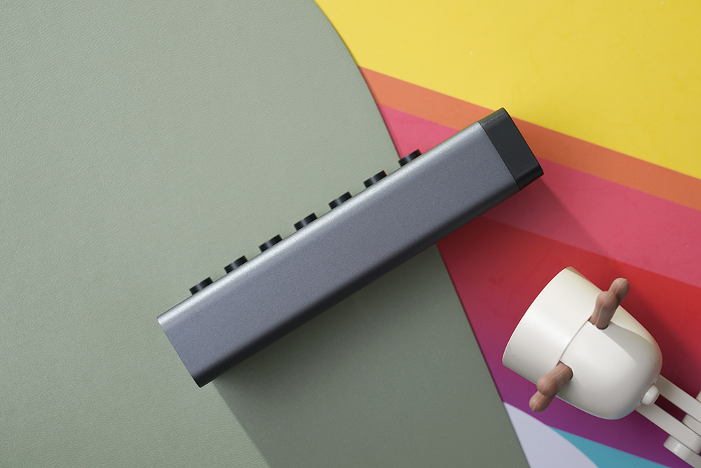 유그린 7-IN-1 USB3.0 허브의 바디 자체는 알루미늄 합금으로 제작되었습니다. 그래서 상대적으로 견고한 내구성을 제공한다는 장점이 있습니다. 참고로 포트가 있는 옆면은 플라스틱 소재로 마무리되었습니다.